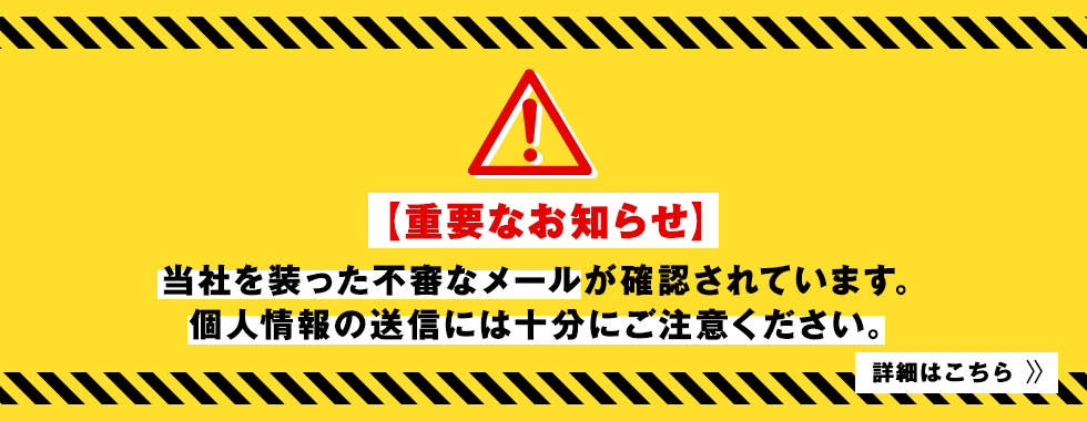 【重要なお知らせ】 当社を装った不審な勧誘メール・メッセージにご注意ください。 最近、当社を名乗り、各種プラットフォームでの「販売パートナー募集」や「副業案内」