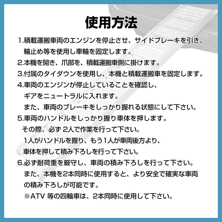 ※必ず積荷の重量を確認して耐荷重に余裕のあるラダーレールをご使用ください。
