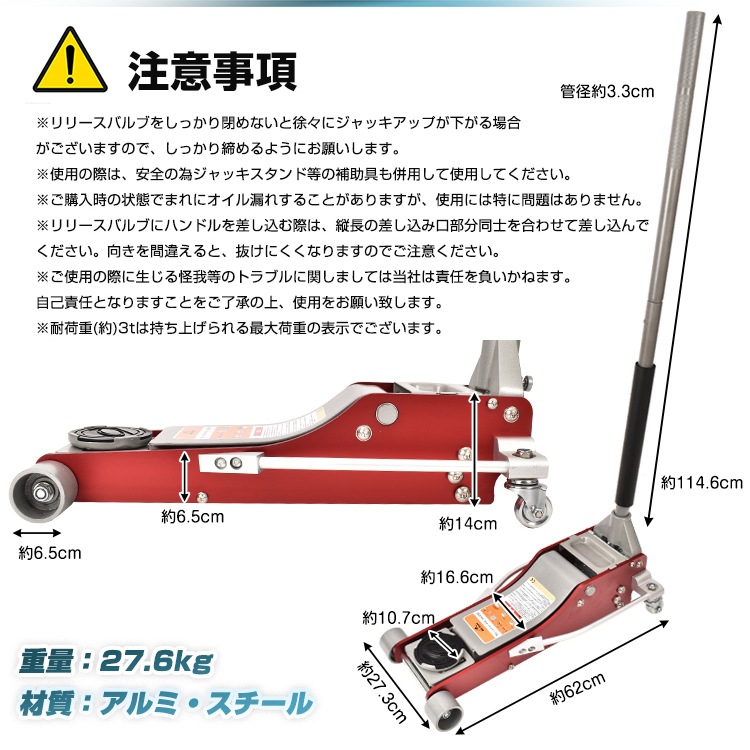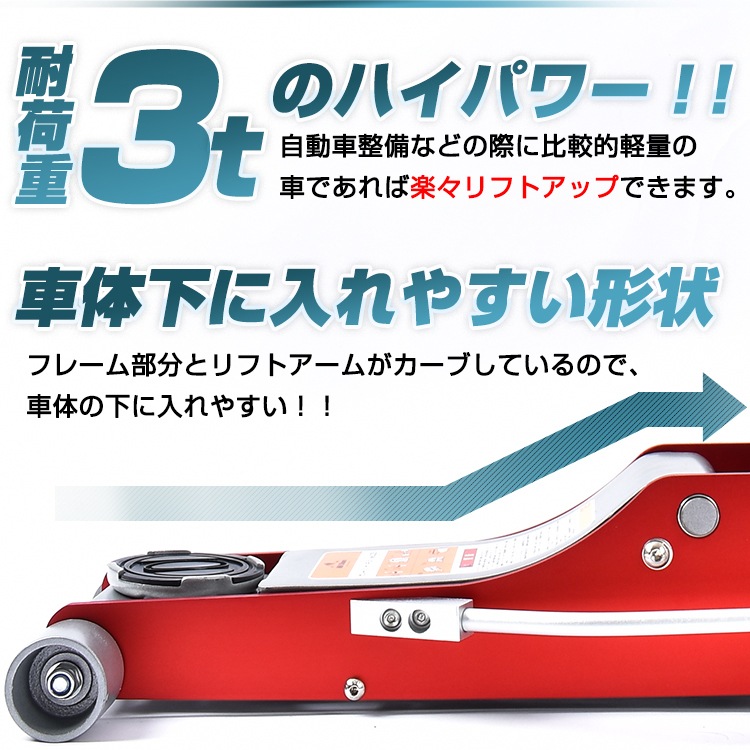 ■最大耐荷重3tなので、比較的軽量の車であれば楽々ジャッキアップできます!