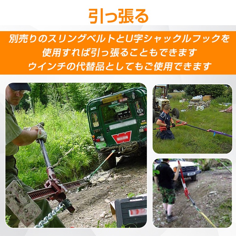 ■別売りのスリングベルトとU字シャックルフックを使用すれば引っ張ることもできます