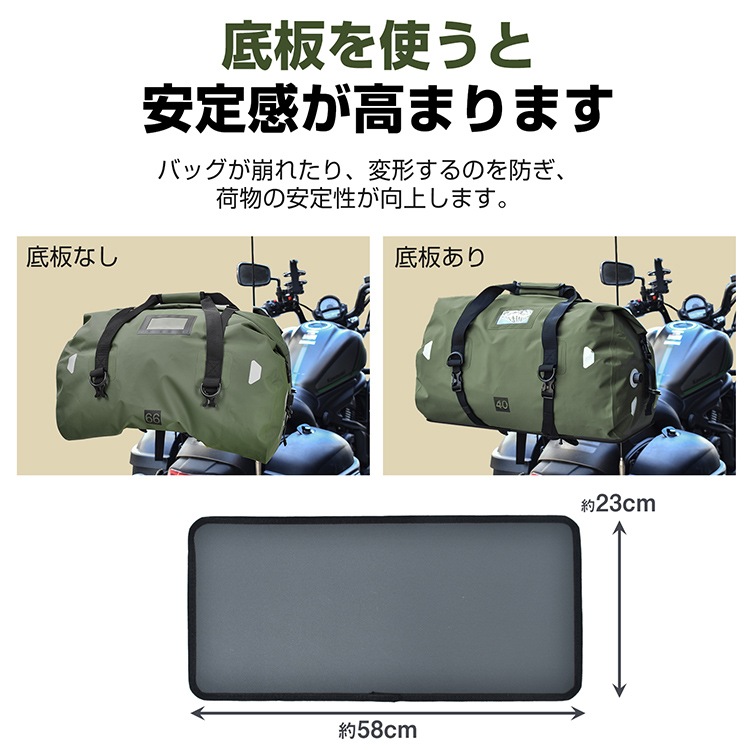 ■付属の底板を使うとバッグの崩れや変形を防ぎ、荷物の安定性が向上します。