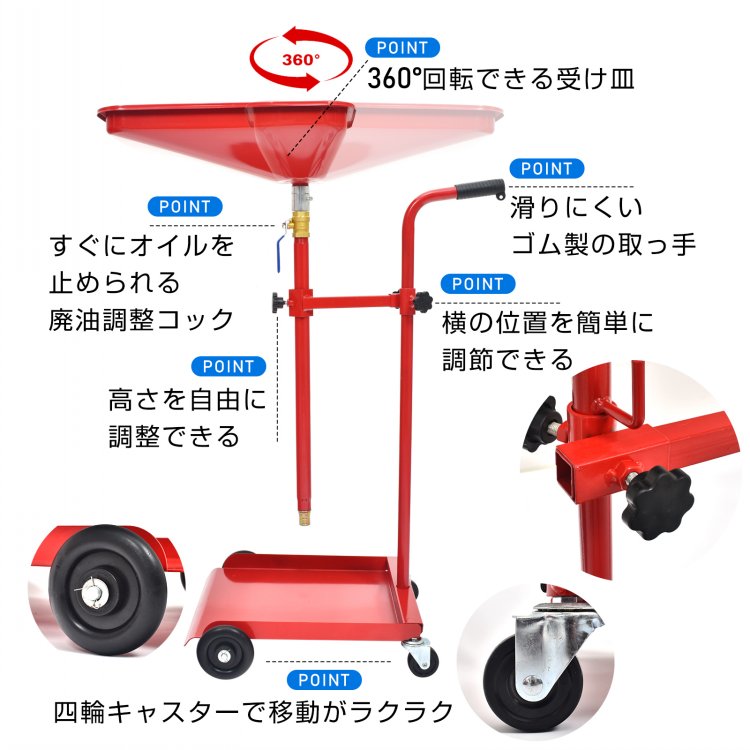 ■受け皿は回転ジョイントにより自由に回転でき、どの位置からでもオイルを受け取れます。