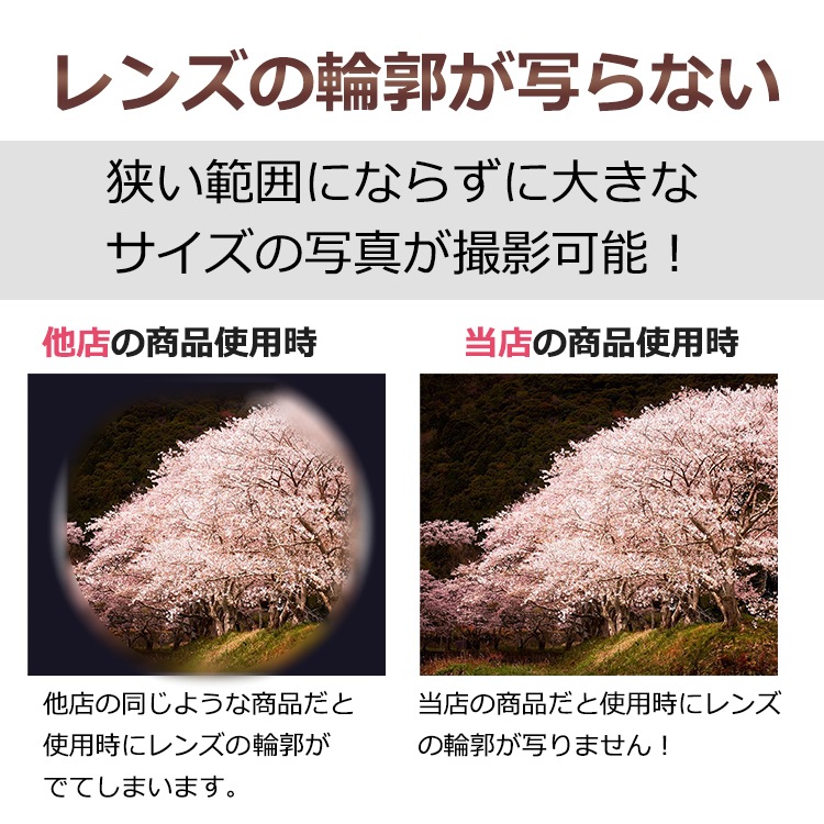●使用時にレンズの輪郭が写らないので大きいサイズの写真撮影可能!