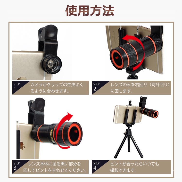 【商品内容】:レンズ/レンズキャップ×2/三脚/レンズ拭き
