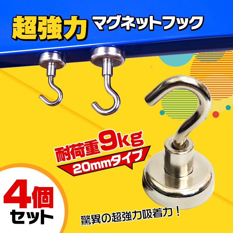 【商品内容】:超強力マグネットフック 20mmタイプ 4個セット