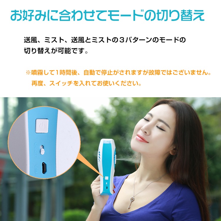 ■送風、ミスト、送風とミストの3パターンのモードの切り替えが可能