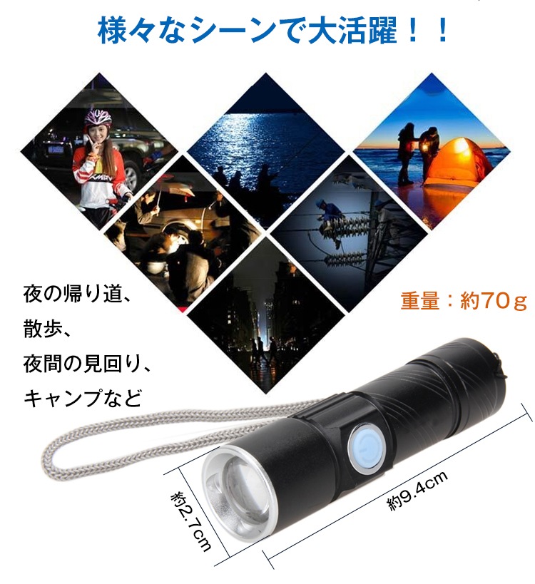 【商品名】:USB充電式ミニLEDライト