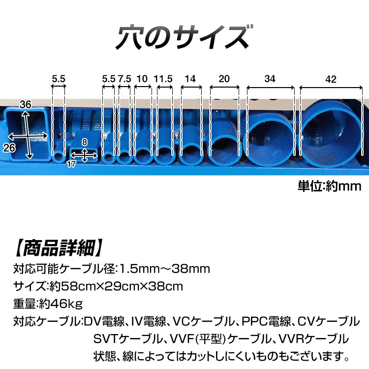 【対応可能ケーブル径】:(約)1.5mm~38mm