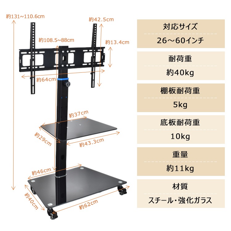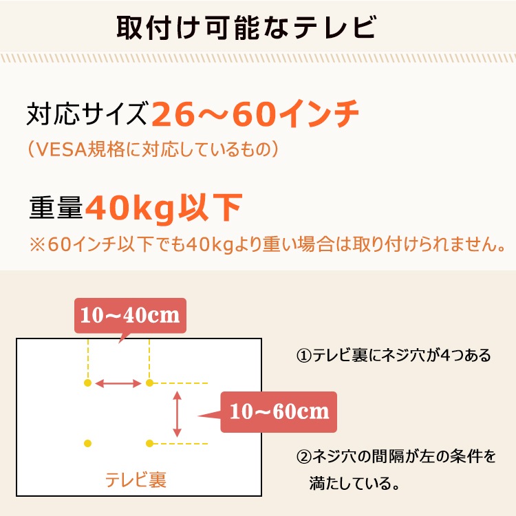 ■26~60インチまでのテレビを設置可能!