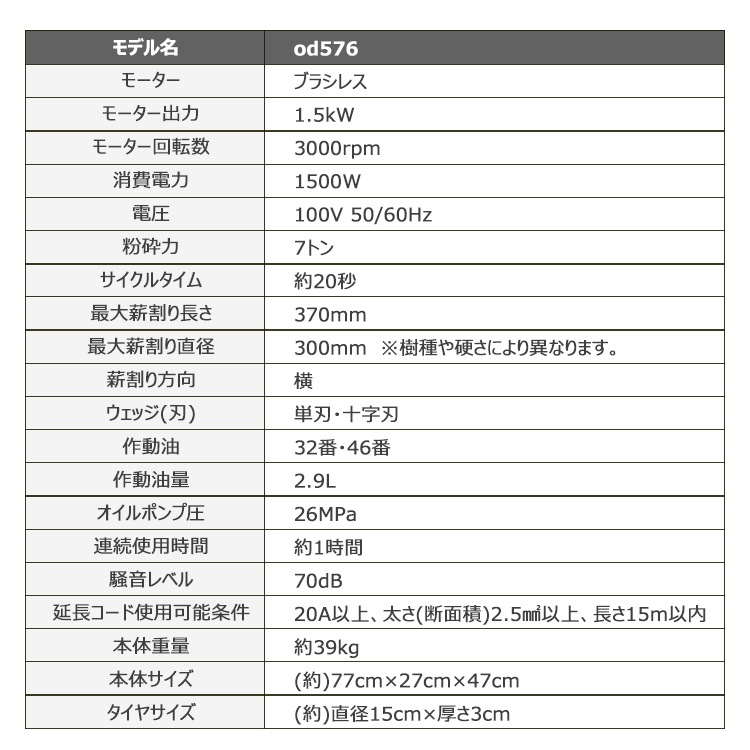 【商品内容】:電動式薪割り機7t