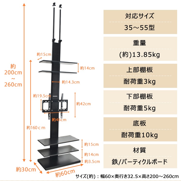 【サイズ(約)】:幅60×奥行き32.5×高さ200~260cm