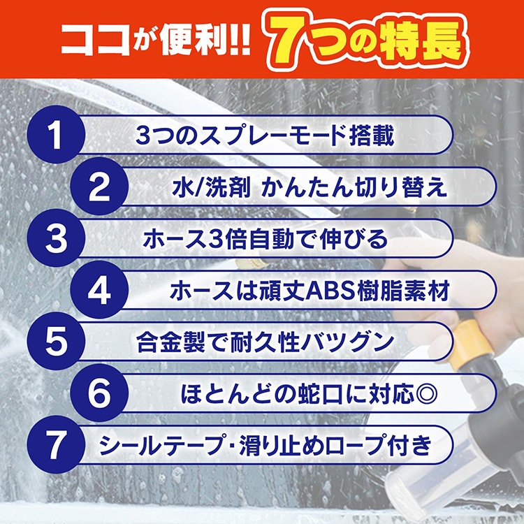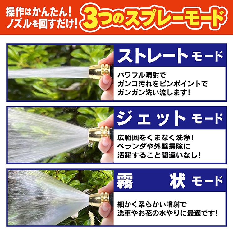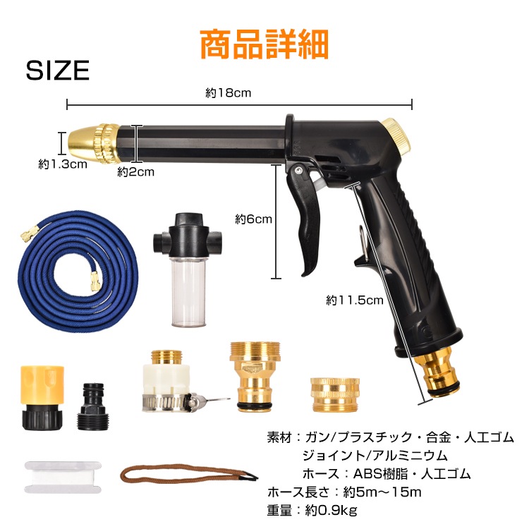 【素材】:ノズル/プラスチック・合金・人工ゴム ジョイント/アルミニウム ホース/ABS樹脂・人工ゴム