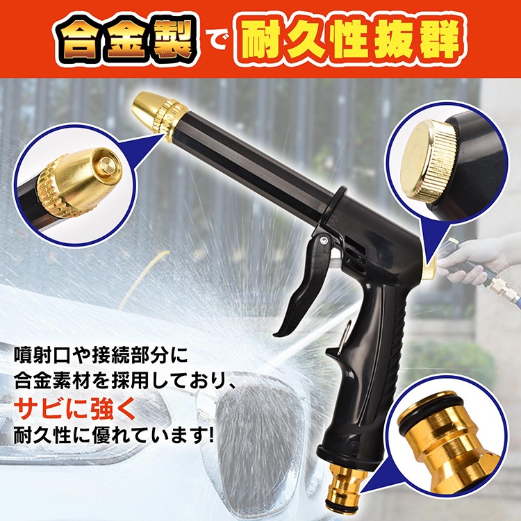 ■噴射口や接続部分に合金素材を採用しており、錆に強く耐久性に優れています!