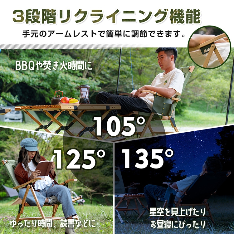 【リクライニング角度】:105°/125°/135°
