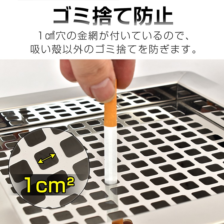 ■金網が付いているので吸い殻以外のゴミ捨てを防ぎます。