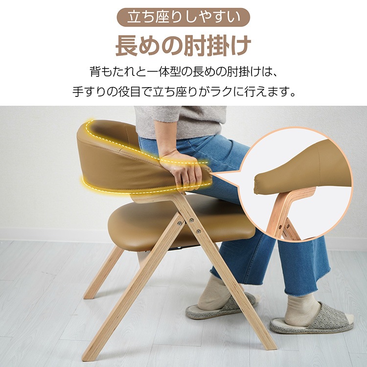 ■長めの肘掛けは手すりの代わりに支えてくれるので立ち座りがラクに行えます。