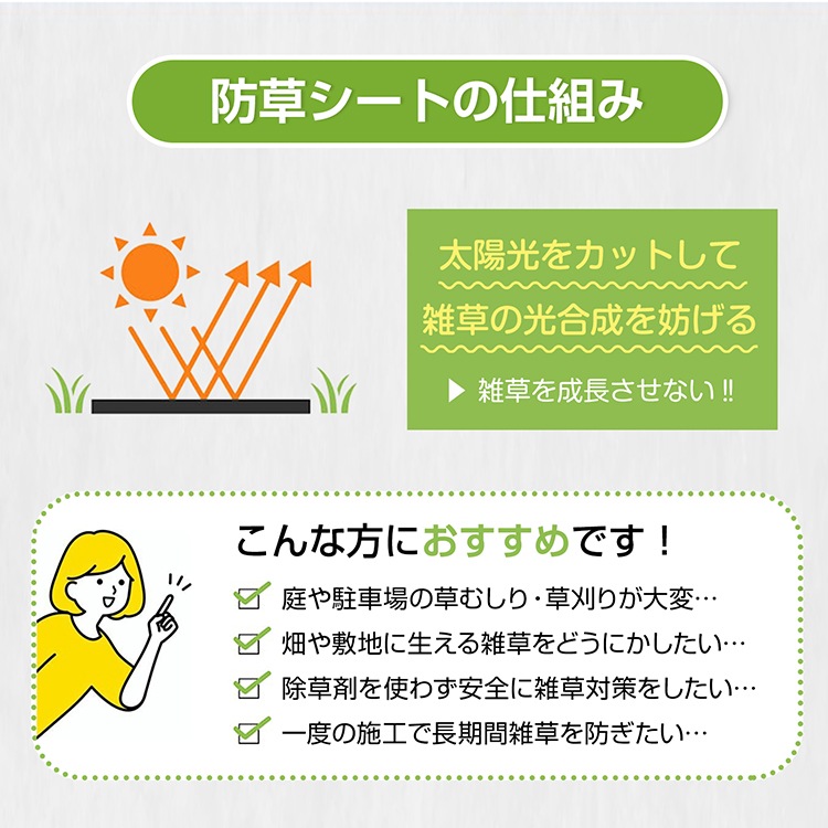 ■遮光率100%!太陽光を遮断し、雑草の光合成を抑制します。