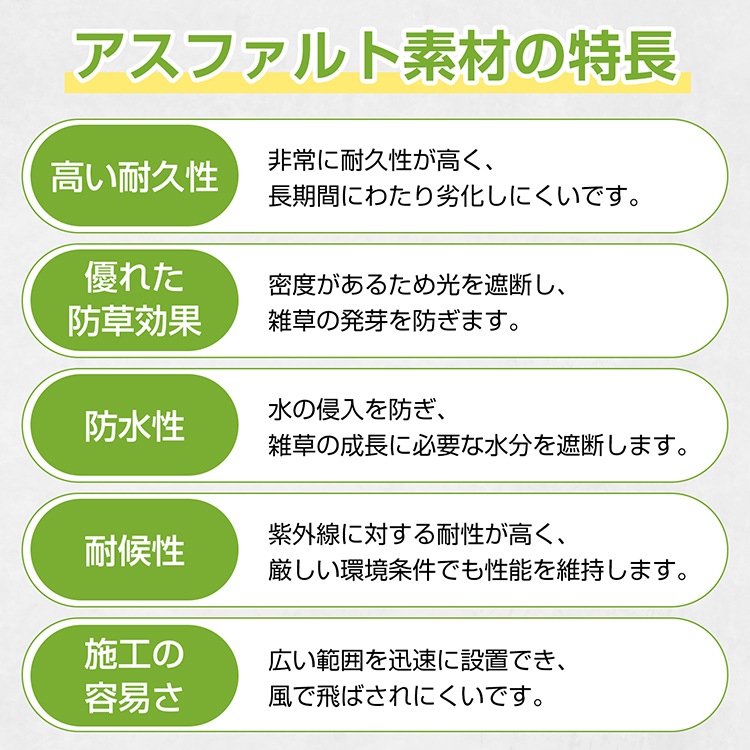 ■アスファルト素材なので非常に耐久性が高く、長期間にわたり劣化しにくいです。