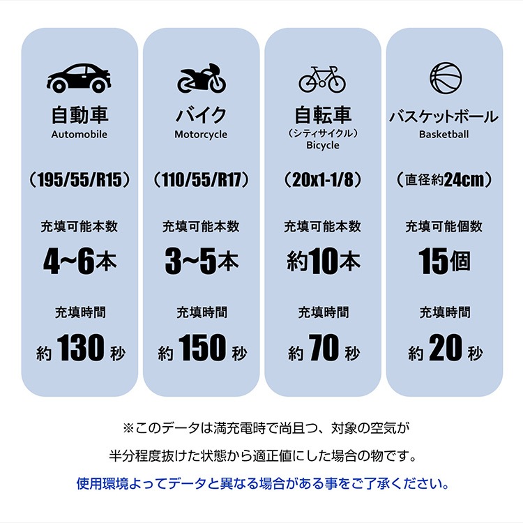 ■満充電で自動車のタイヤ約10本可能