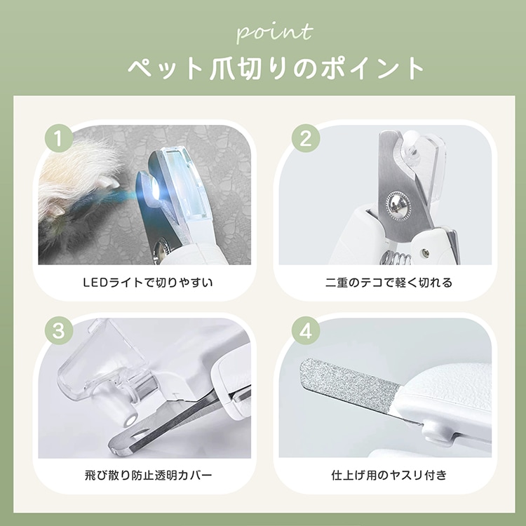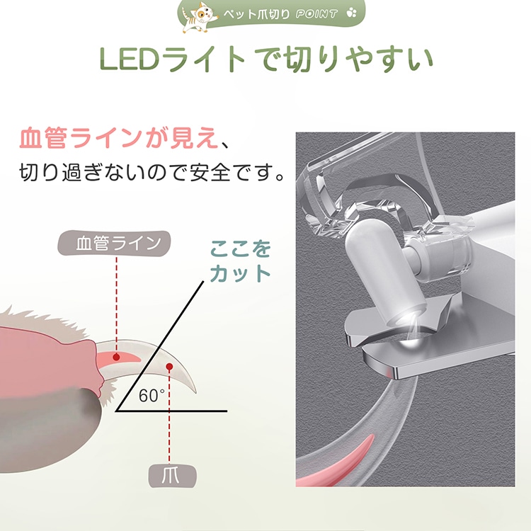 ■爪切りはLEDライト付き!血管ラインが見え、切り過ぎないので安全です。