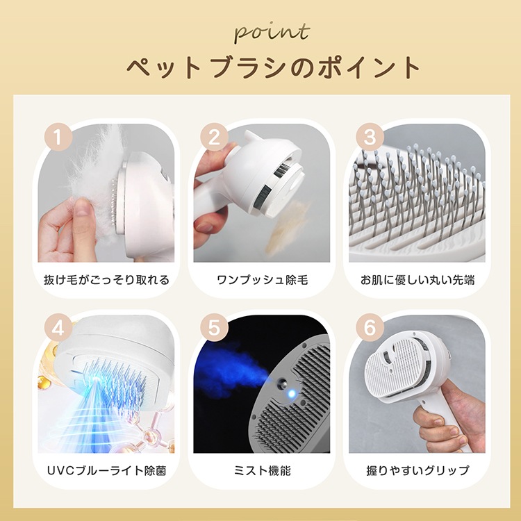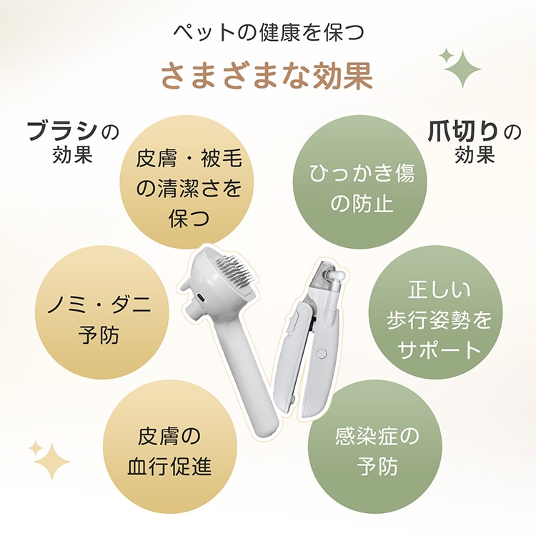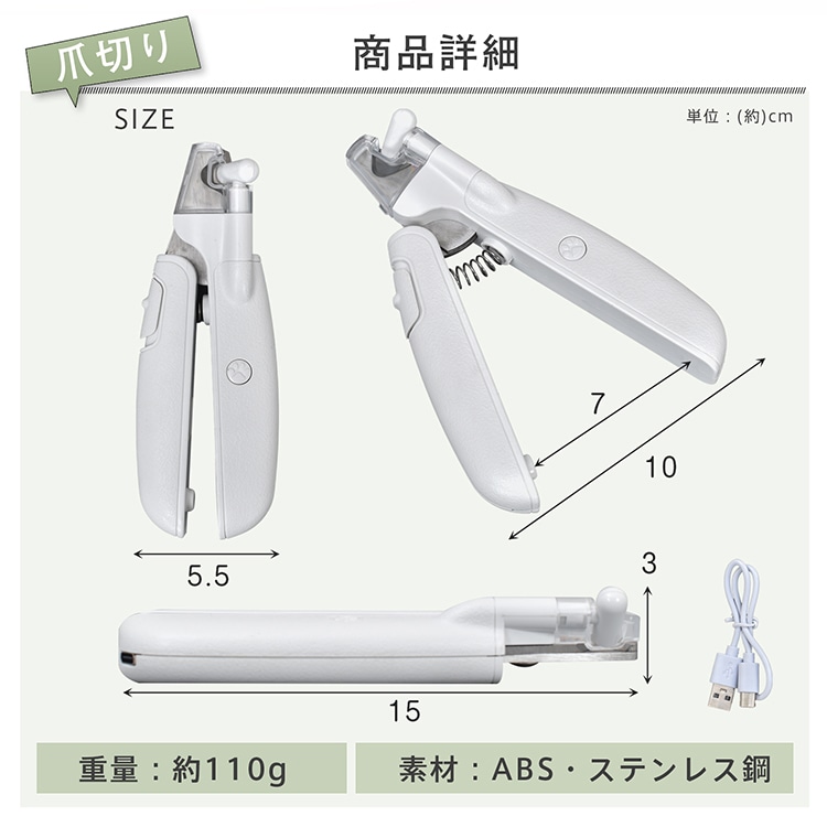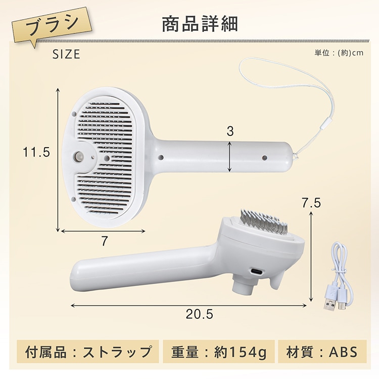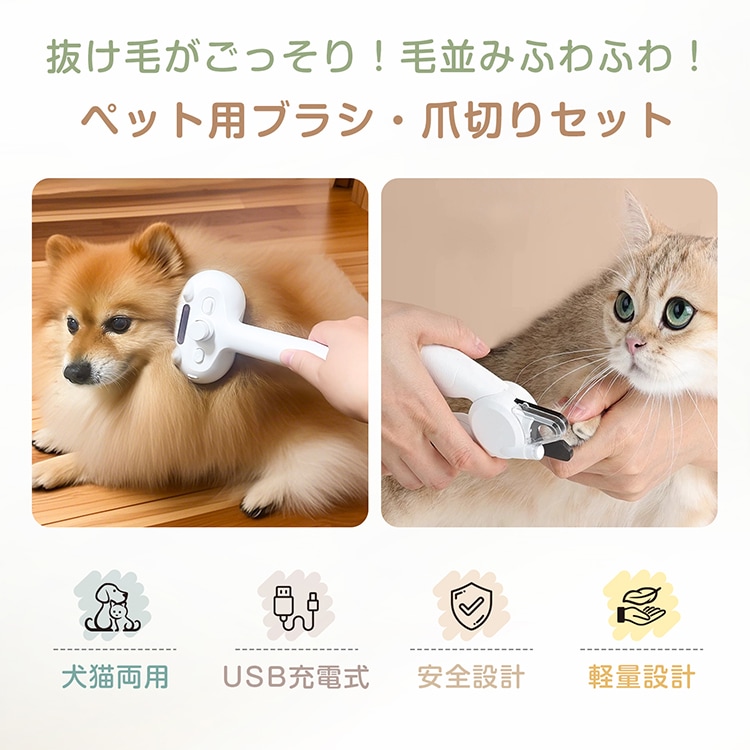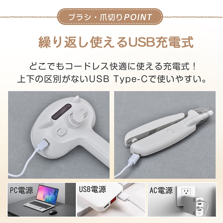 【商品内容】:ペット用ブラシ・爪切り・ブラシ用ストラップ・USB充電ケーブル