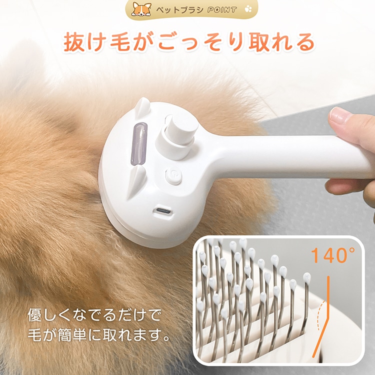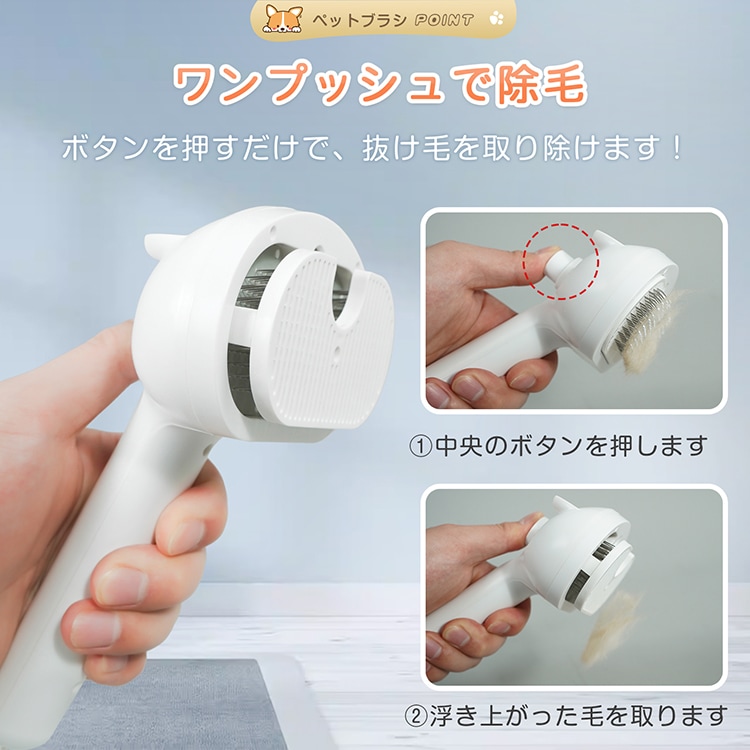 ■撫でるだけで抜け毛がごっそり取れ、ワンプッシュで除毛できます。