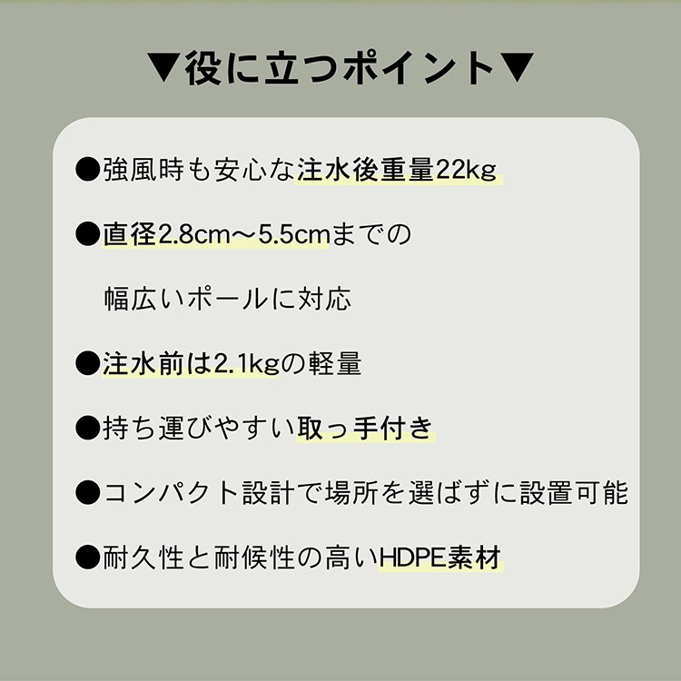 ■強風時も安心な注水後重量22kg