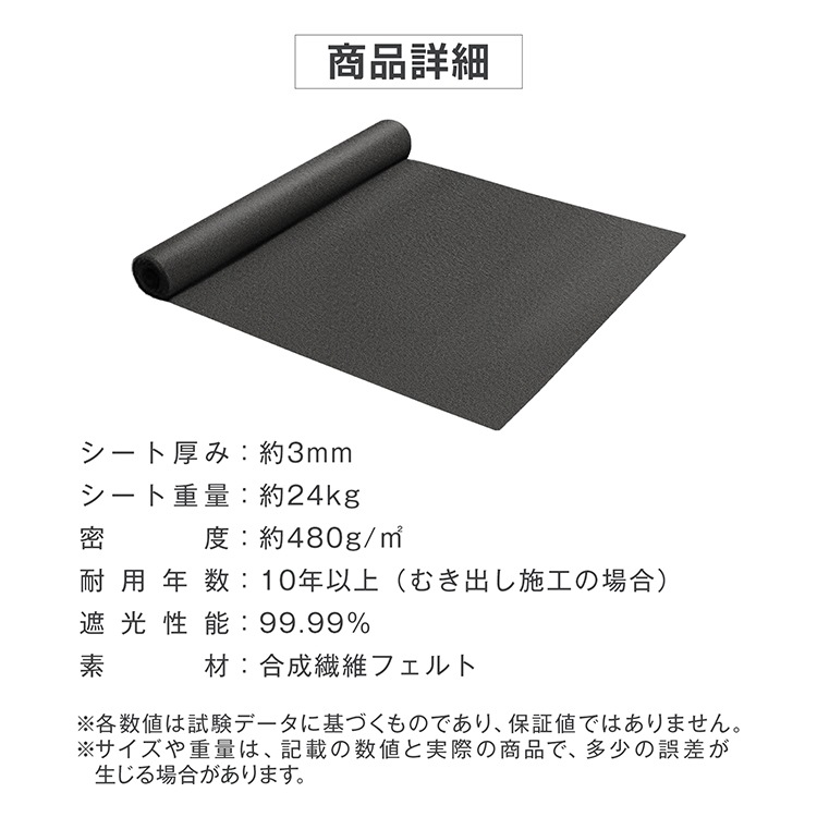 ■遮光率99.99%!太陽光をしっかり遮断し、雑草の光合成を防止。