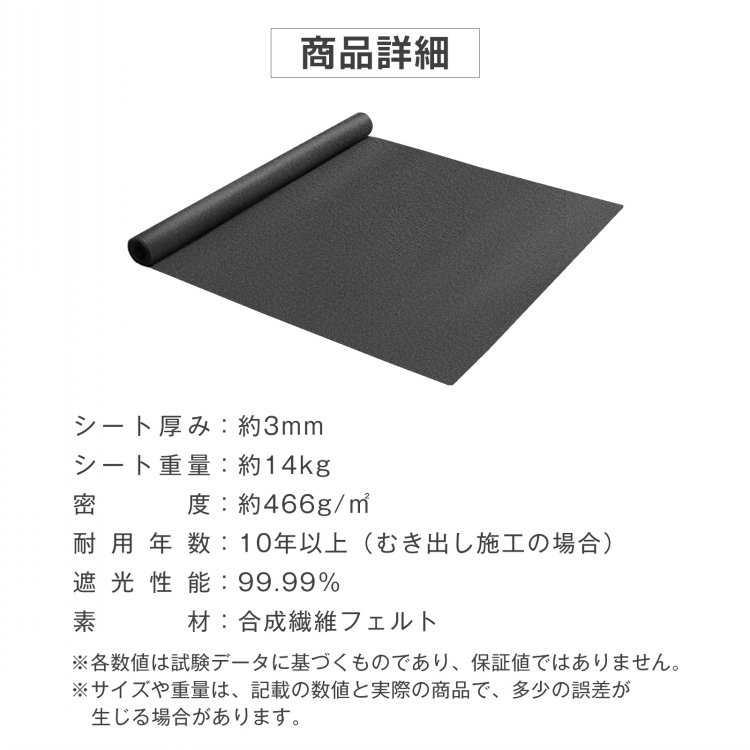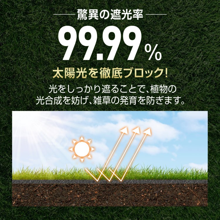 ■遮光率99.99%!太陽光をしっかり遮断し、雑草の光合成を防止。