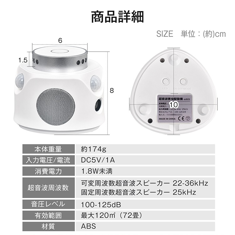 【超音波周波数】:可変周波数/22-36kHz・固定周波数/25kHz