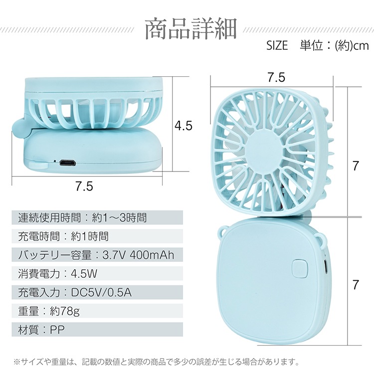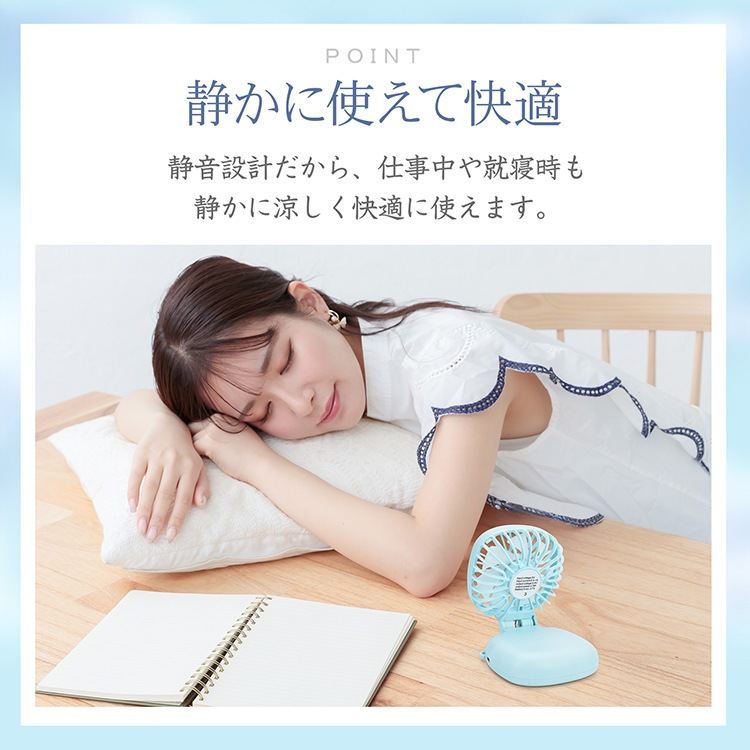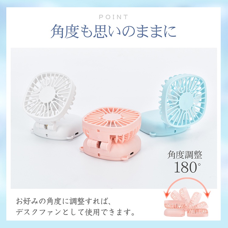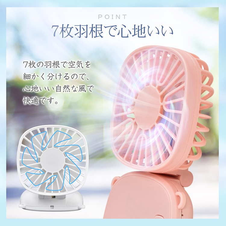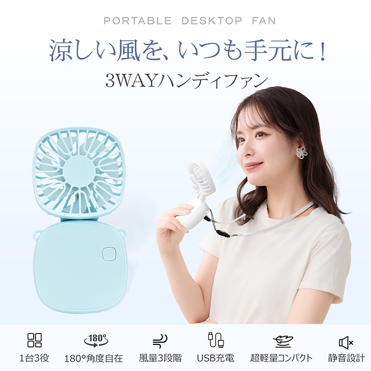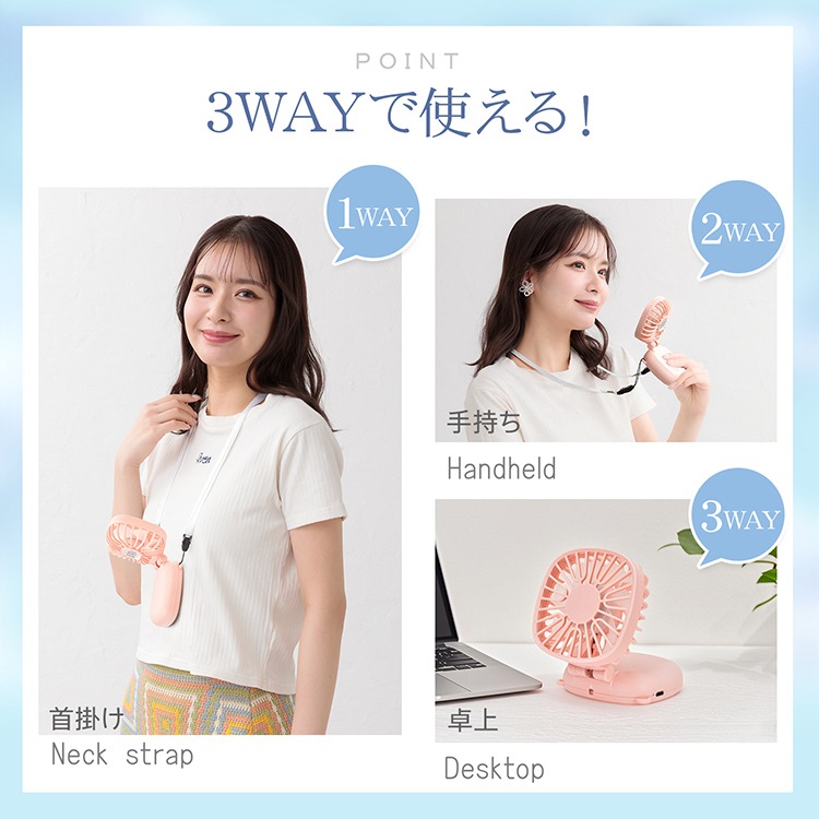 ■手持ち・首掛け・卓上、3WAYで使えるハンディファン