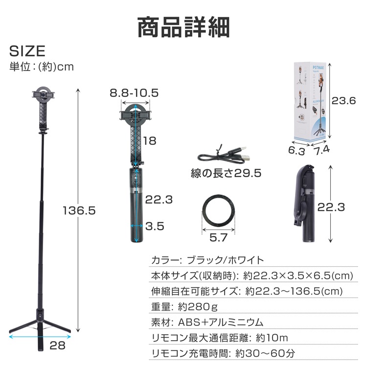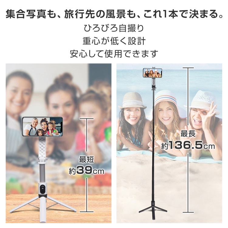 ■ 最大136.5cmまでしっかり伸ばせて、高さや角度のバリエーションが広がります。