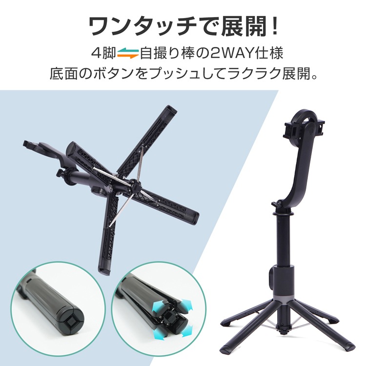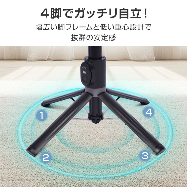 ■ 4脚を広げて自立できるから、手が離せるシーンでも安定して撮影可能。