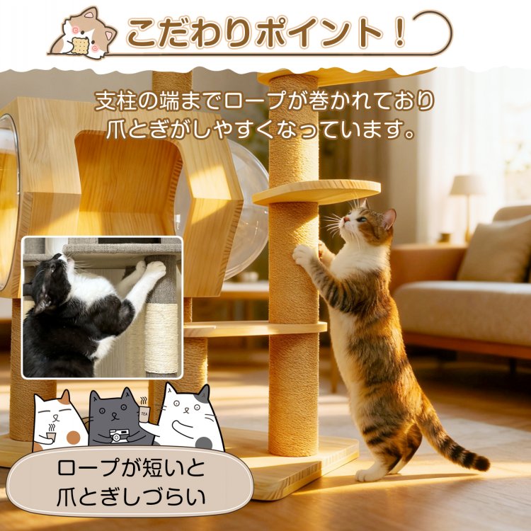 ■ 支柱で爪とぎ可能で多頭飼いでもオススメ