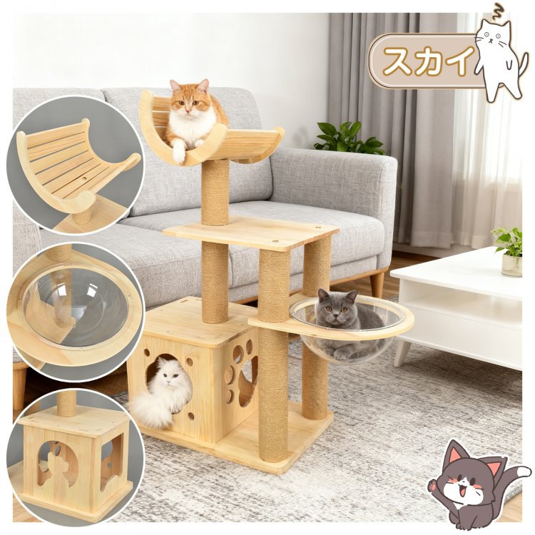 ■ 低めのタワーで不慣れな猫ちゃんも安心