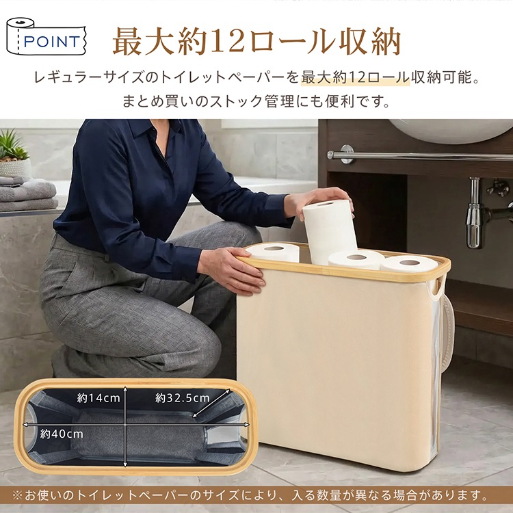 ■ 最大約12ロール収納できる大容量